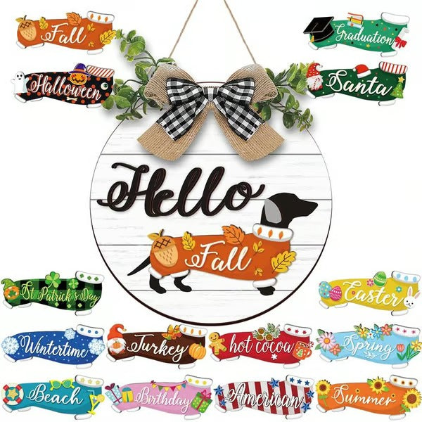 This charming wooden sign features a delightful dachshund design and comes with a variety of detachable accessories, making it perfect for every season and occasion. Whether it's Halloween, a birthday party, or just a cozy day at home, this sign adds a warm touch to your decor.
