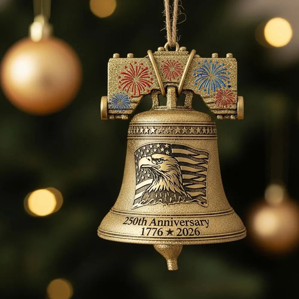 Celebrate 250 years of American heritage with this exquisite Liberty Bell-shaped Christmas ornament, a perfect fusion of history and holiday spirit.