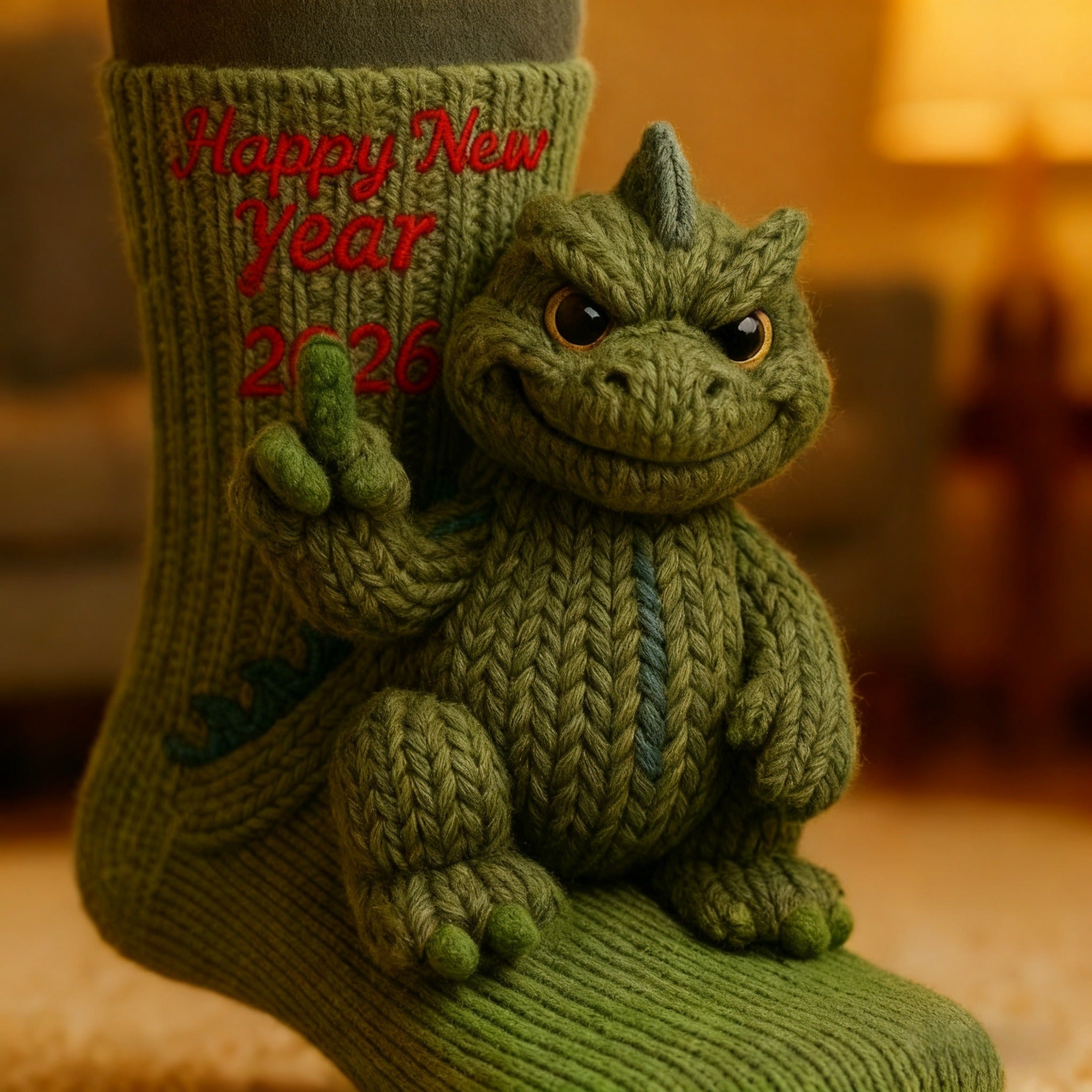 🧸 Ring in 2026 with a little mischief and a lot of warmth —🔥these 3D Godzilla Knit Socks bring the King of Monsters right to your feet for the New Year celebration.