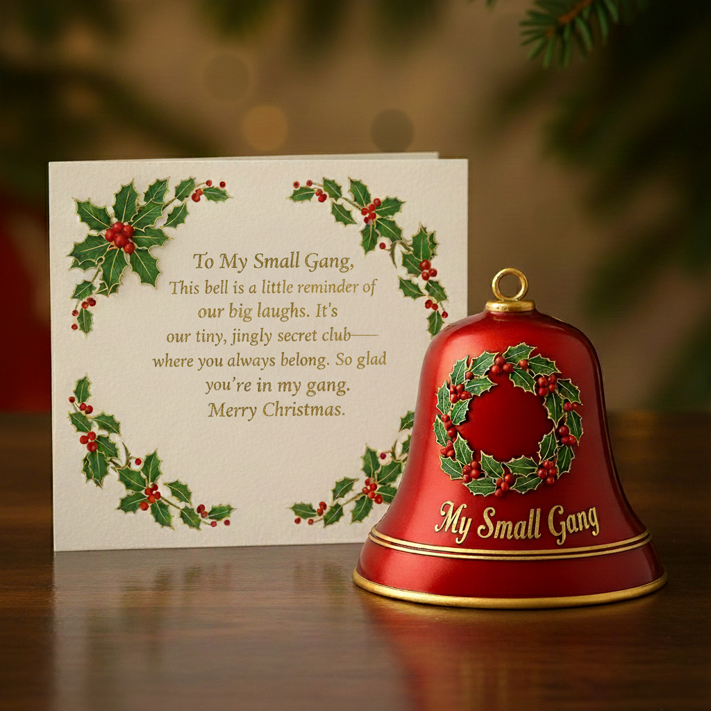 🔔❤️🎄This beautifully crafted Christmas bell set captures the true spirit of friendship during the holiday season. The vibrant red bell features an elegant green holly wreath design, available with either "My Small Gang" or "B.F.F." engraving to celebrate different kinds of precious bonds.