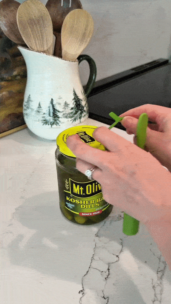 Say goodbye to wet hands and sticky jars! This clever gadget lets you easily spear and lift pickles, olives, and other goodies straight from the jar, keeping your hands—and the jar rim—perfectly clean.