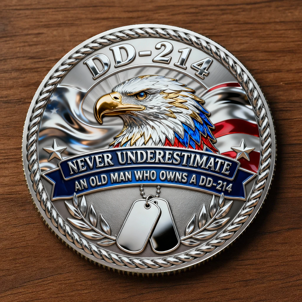 The DD-214 “Never Underestimate” Coin honors every veteran who’s earned their freedom the hard way — through courage, sacrifice, and service.