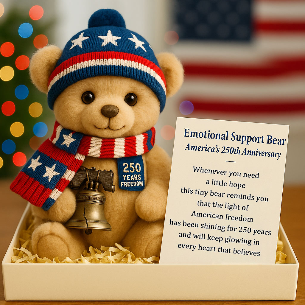 🧸Celebrate 250 years of American spirit with this Emotional Support Bear, lovingly designed to bring warmth, hope, and patriotic pride.