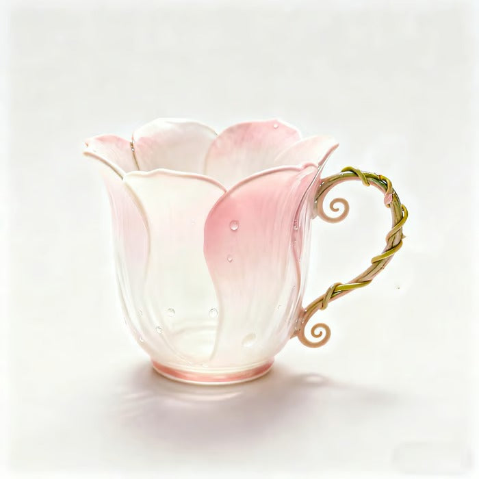 The Bloom Whisper Mug is inspired by the first light touching flower petals—soft, pure, and full of new beginnings. Its hand-blown glass design glows with a natural gradient, turning your daily tea or coffee into a moment of quiet joy.