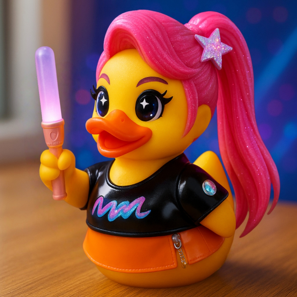 Let your eyes shine with the "K-Pop Idol Duck"! 🦆✨This collectible duck blends adorable chibi style with bold K-pop flair, capturing the charm, confidence, and high-energy spirit of your favorite idols.