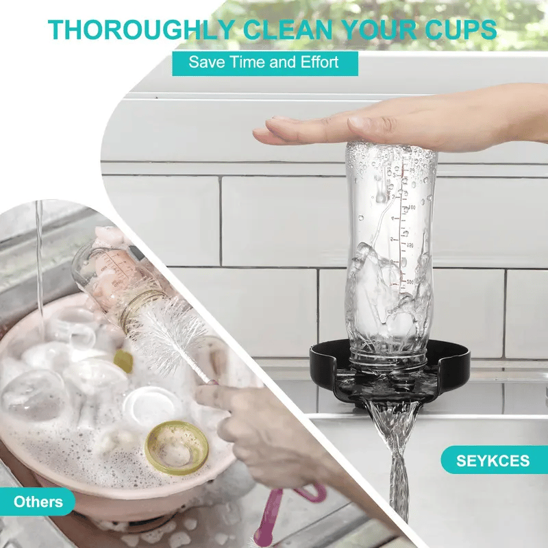 👇 One-Press Cleaning: Just turn the glass upside down, press it gently against the rinser, and let the high-powered spray do the job. It's quick, hands-free, and satisfying.