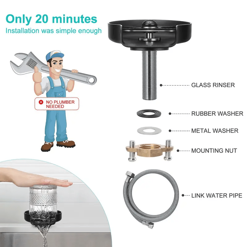 💪 Built to Last: Made of premium 304 stainless steel, this glass rinser is rust-resistant, sturdy, and built for daily use. The 360° rotating bracket is covered in high-temperature-resistant, non-slip silicone—keeping cups stable while rinsing.