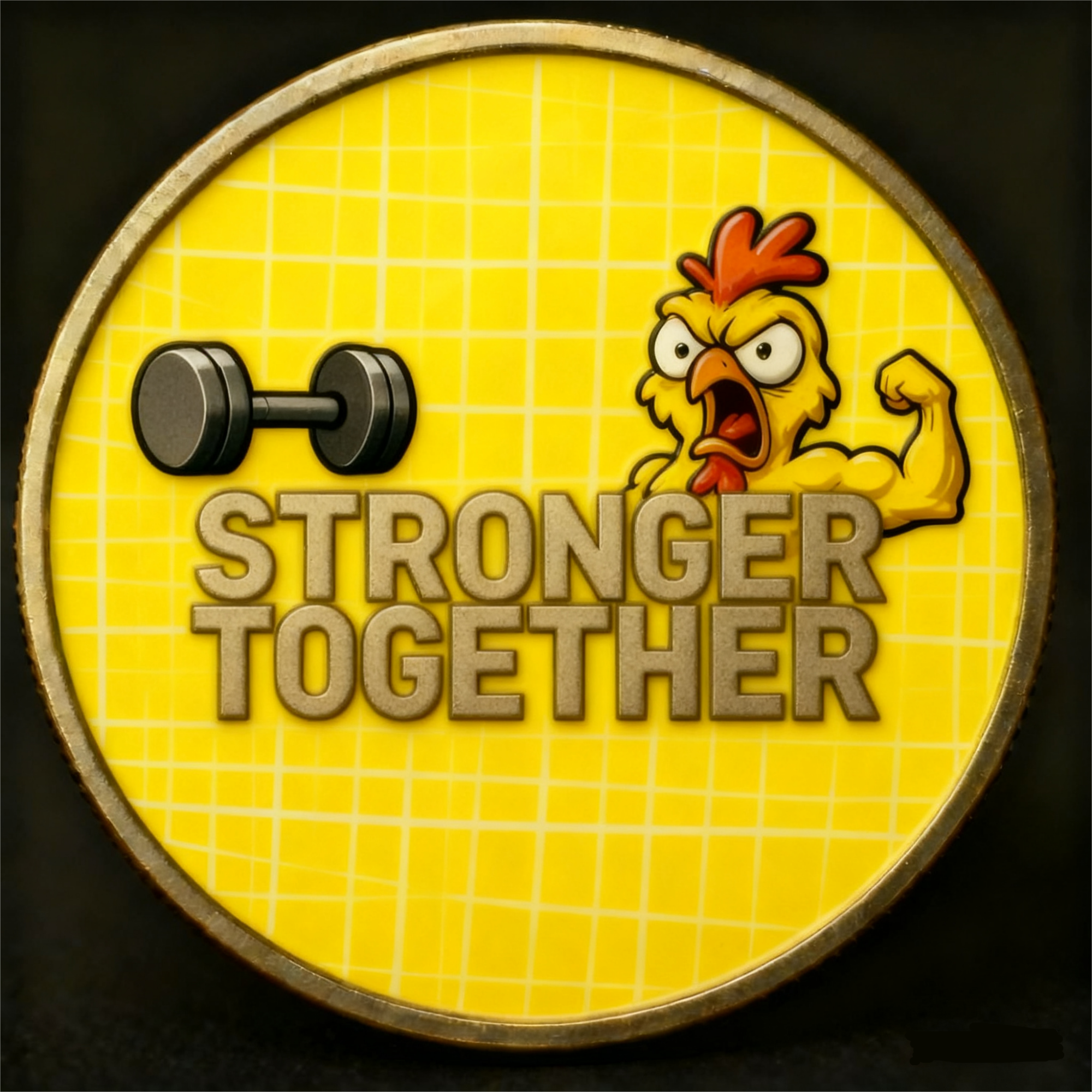 Featuring a furious muscle chicken lifting dumbbells, this bold collectible coin captures the pure energy of gym life — raw, funny, and full of attitude.