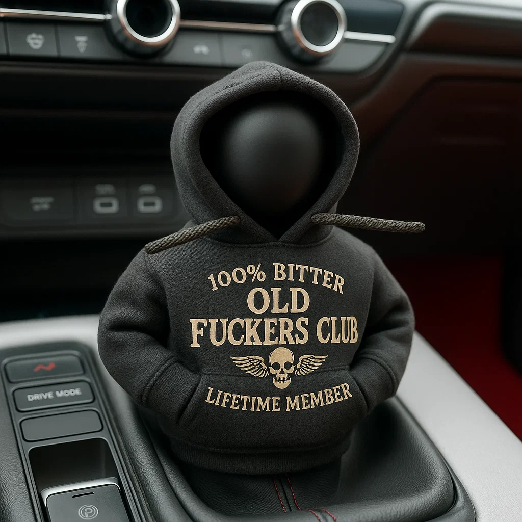 “Old F*ckers Club – Lifetime Member Car Dashboard Doll” is a cheeky, unapologetic accessory for anyone who’s earned their “old fucker” status and wears it like a badge (or a hoodie, in this case).