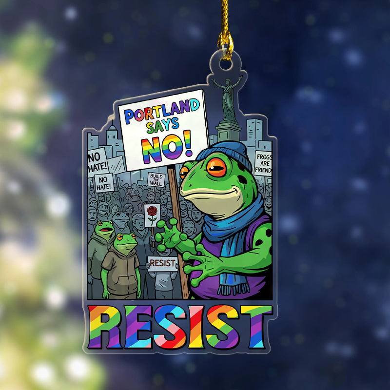 🥰Featuring a determined frog leading a peaceful crowd under the message “RESIST,” this design captures the true Portland spirit — progressive, proud, and full of heart.