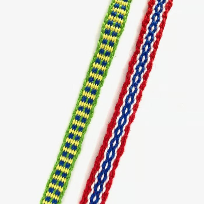 - Cotton thread to make 2 different bands, each about 3/8" (1 cm) wide and 84 in (215 cm) long when finished. The warp is prewound.