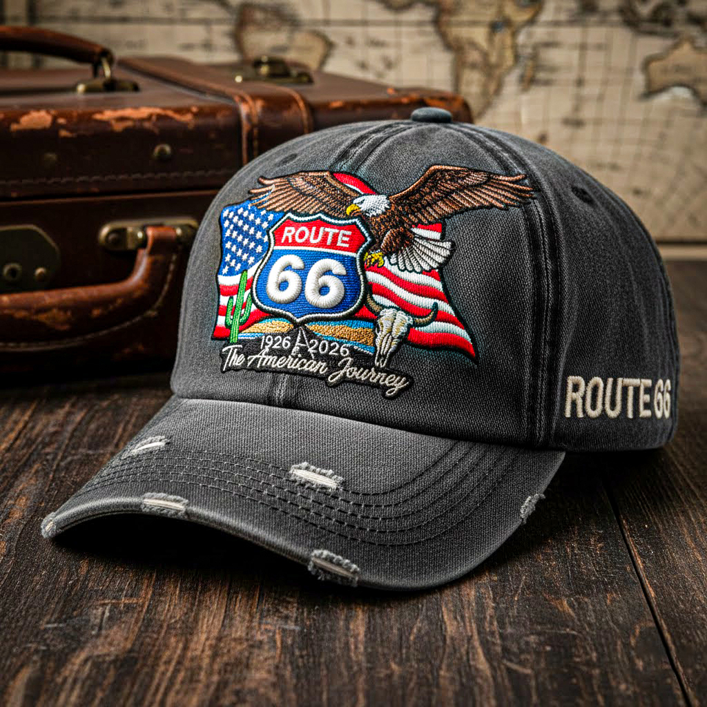 Celebrate the iconic "Mother Road" with this Route 66 Centennial cap. Featuring classic designs like the bold Route 66 shield, an eagle soaring above, and vintage road elements, it’s a tribute to 100 years of the open road and adventure. 🚗🦅