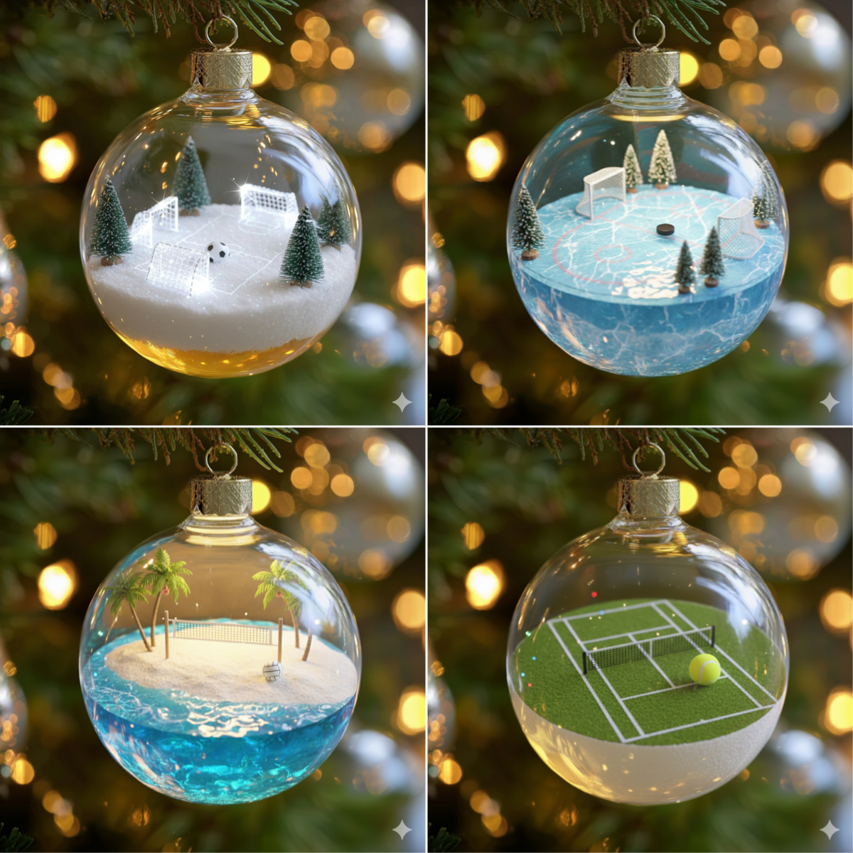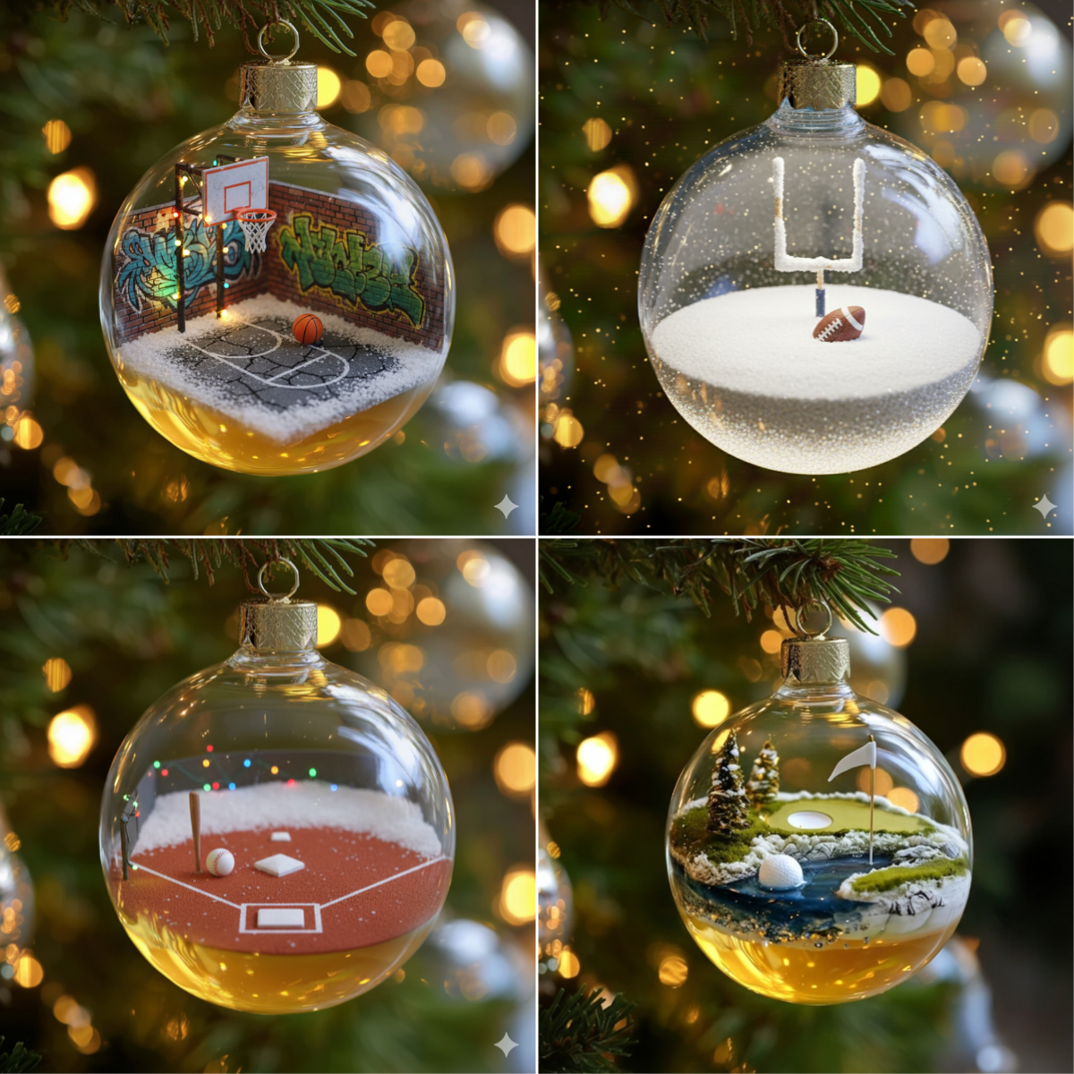 Bring the thrill of the game to your Christmas tree! These stunning glass ornaments feature realistic 3D sports scenes that seem to leap right out of the ball. From the soccer field to the golf course, each piece captures the excitement of your favorite sports in perfect holiday style!