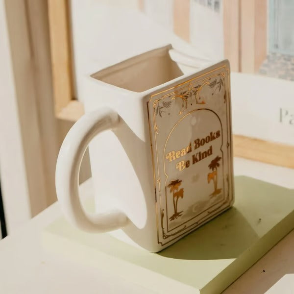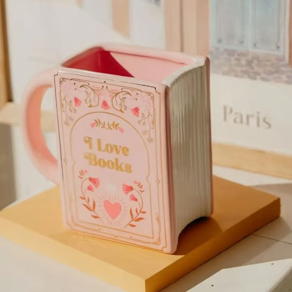 The Bookworm's Mug is a beautifully crafted ceramic cup that looks just like a classic hardcover book.