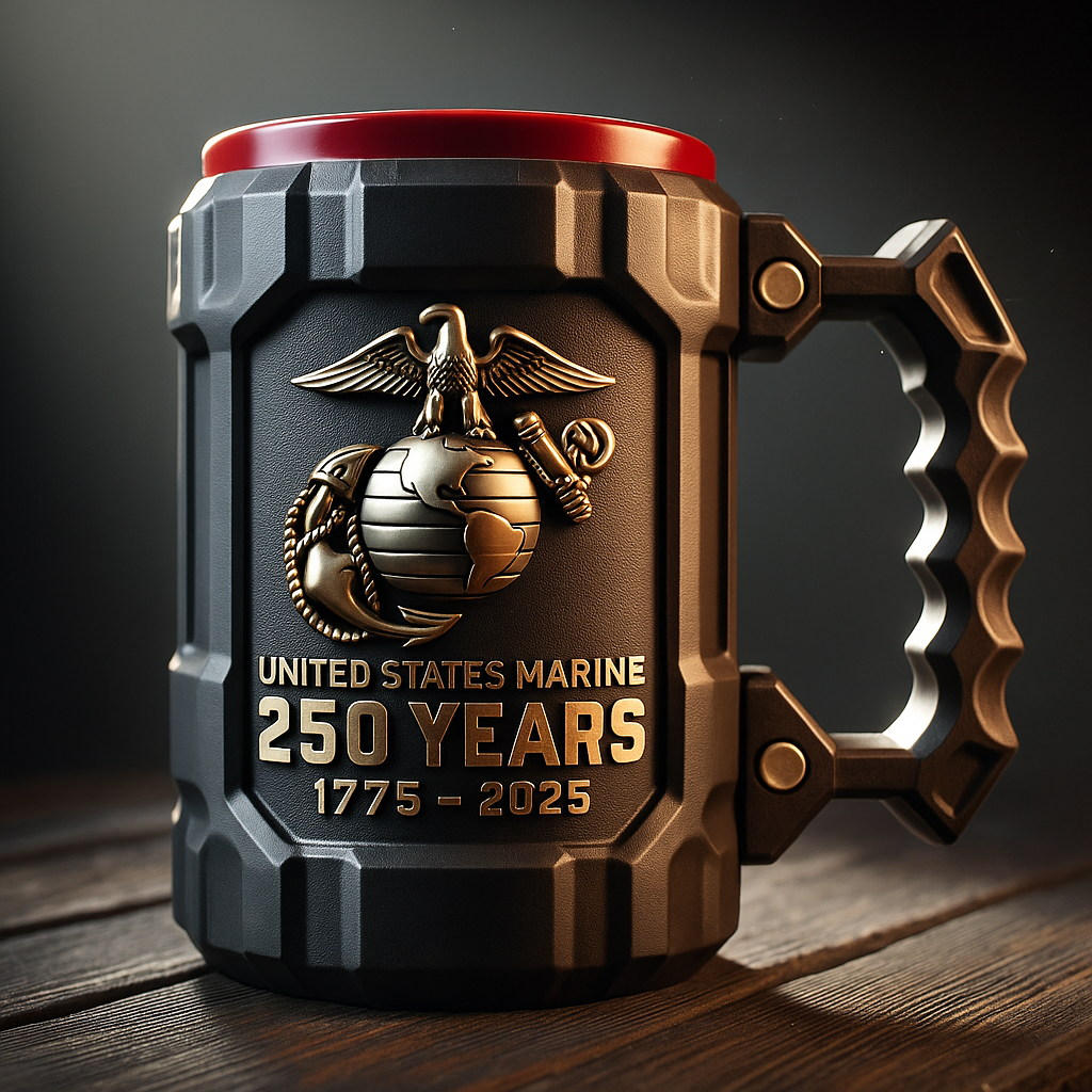 Celebrate a milestone two and a half centuries in the making. The U.S. Marine 250 Years Commemorative Mug honors Marines past, present, and future with a commanding design: the Eagle, Globe & Anchor rendered in sculpted relief and anniversary lettering that won’t go unnoticed.