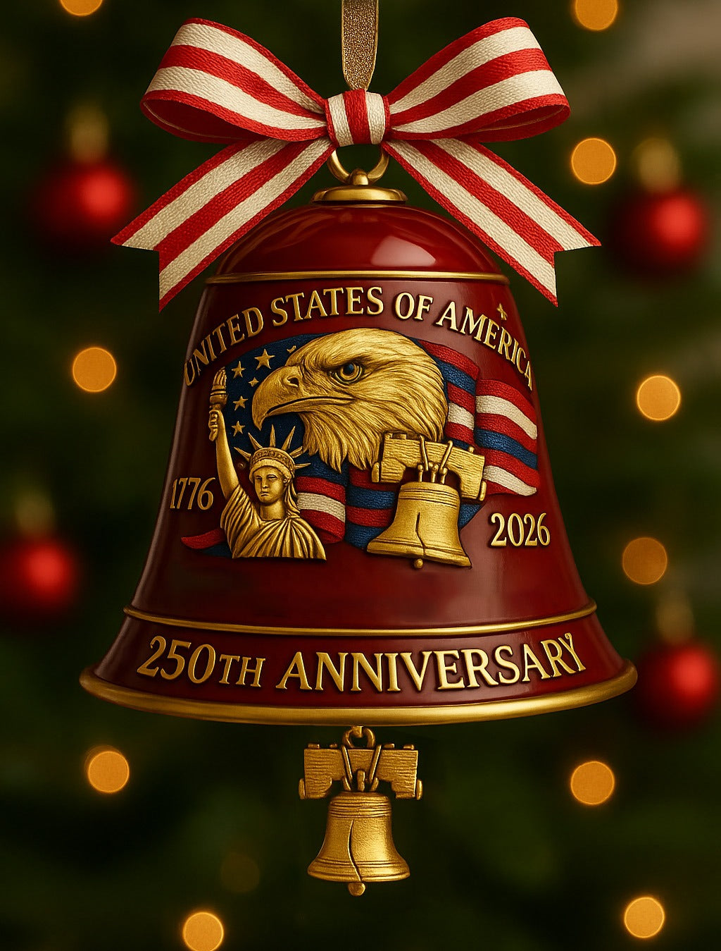 🥳Celebrate a once-in-a-lifetime milestone — the 250th Anniversary of the United States of America — with this stunning Liberty Bell Ornament, a tribute to the enduring spirit of freedom, courage, and unity that defines the nation.